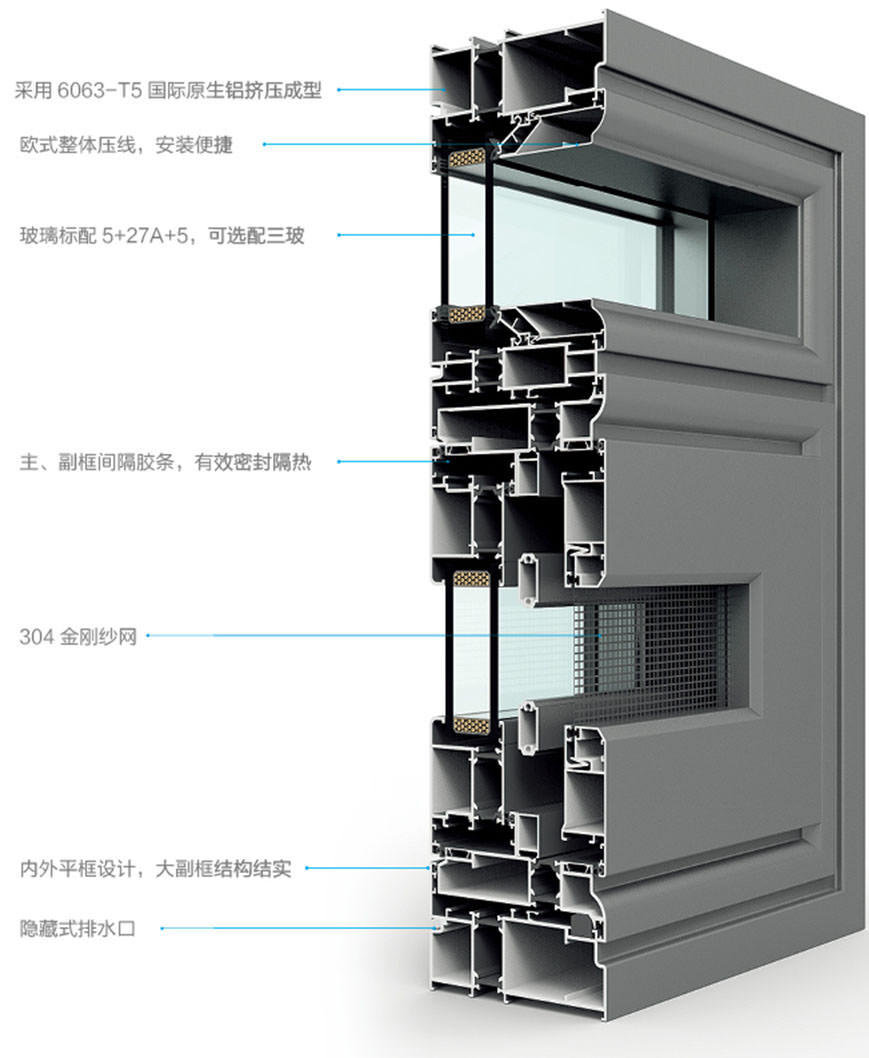 采用EPDM發泡膠條設計,腔體發泡填充,提高整窗水密、氣密、保溫性能;
